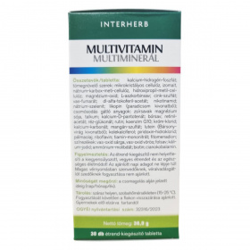 Az INTERHERB MULTIVITAMIN MULTIMINERÁL filmtabletta egy komplex étrend-kiegészítő, amely 28 különböző hatóanyagot tartalmazhat, beleértve a vitaminokat, ásványi anyagokat és nyomelemeket. A termék különösen hasznos lehet fokozott szellemi és fizikai igénybevétel, egyoldalú táplálkozás, diéta, betegség utáni lábadozás, vagy tavaszi-őszi fáradékonyság esetén. A vitaminok és ásványi anyagok szerepet játszhatnak az immunrendszer és az idegrendszer egészséges működésében, a szellemi teljesítőképesség és a normál pszichológiai funkció megőrzésében, valamint a fáradtság és kifáradás csökkentésében.