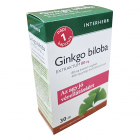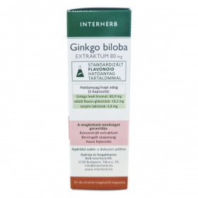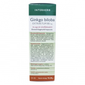 Az INTERHERB Ginkgo biloba EXTRAKTUM 80 mg kapszula a mentális egészség támogatására szolgálhat. A termék standardizált flavonoid hatóanyag tartalommal rendelkezik, amely hozzájárulhat a memória korral járó csökkenésének gátlásához és a jó kognitív funkciók megőrzéséhez. A ginkgo biloba kivonat segítheti az agy teljesítményére és a reakcióképességre is hatással bíró normál vérkeringés fenntartását. A termék koncentrált extraktumot tartalmaz, bevizsgált alapanyagokból készült, és hazai fejlesztés eredménye. A kapszula 80 mg ginkgo levél kivonatot tartalmaz, amely 400 mg ginkgo levél őrleménynek felel meg.