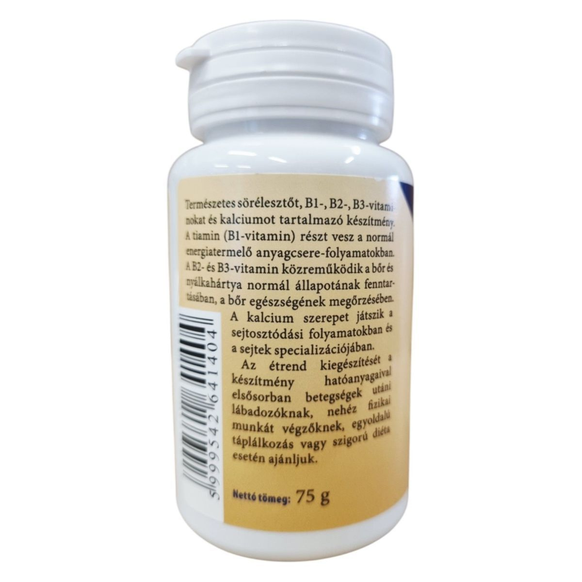 Természetes sörélesztőt, B1-, B2-, B3-vitaminokat és kalciumot tartalmazó készítmény. A tiamin (B1-vitamin) részt vesz a normál energiatermelő anyagcsere-folyamatokban. A B2- és B3-vitamin közreműködik a bőr és a nyálkahártya normál állapotának fenntartásában, a bőr egészségének megőrzésében. A kalcium szerepet játszik a sejtosztódási folyamatokban és a sejtek specializációjában. Az étrend-kiegészítést a készítmény hatóanyagaival elsősorban betegek utáni lábadozóknak, nehéz fizikai munkát végzőknek, egyoldalú táplálkozás vagy szigorú diéta esetén ajánljuk.