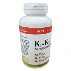 Az INTERHERB K1+K2+D3 VITAMIN KOMPLEX egy étrend-kiegészítő tabletta, amely nagy dózisú, zsírban oldódó vitaminokat tartalmazhat a szervezet megnövekedett K- és D-vitamin igényének kielégítésére. A K-vitamin részt vehet a normál véralvadásban és a csontozat fenntartásában, míg a D-vitamin hozzájárulhat az immunrendszer megfelelő működéséhez, az egészséges csontozat és fogazat fenntartásához, valamint az izmok normál működéséhez. A termék fogyasztása különösen ajánlott lehet egyoldalú étrend, fizikai vagy szellemi fáradtság, illetve időskor esetén. A termék minőségét a csomagoláson jelzett ideig őrzi meg.