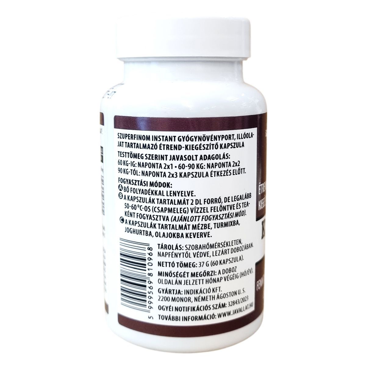 A termék szuperfinom instant gyógynövényport és illóolajat tartalmazó étrend-kiegészítő kapszula. Az ajánlott fogyasztási módok közé tartozik a kapszulák bő folyadékkal történő lenyelése, a kapszulatartalom forró (50-60 °C-os) vízben felöntve teaként való fogyasztása, vagy mézbe, turmixba, joghurtba, olajokba keverve. Az ajánlott kiegészítés magas vízoldható rosttartalmú étrend, például útifű maghéj, lenmag, valamint friss vagy párolt zöldségek és gyümölcsök rendszeres fogyasztása. A termék nettó tömege 37 g, amely 60 kapszulát tartalmaz.