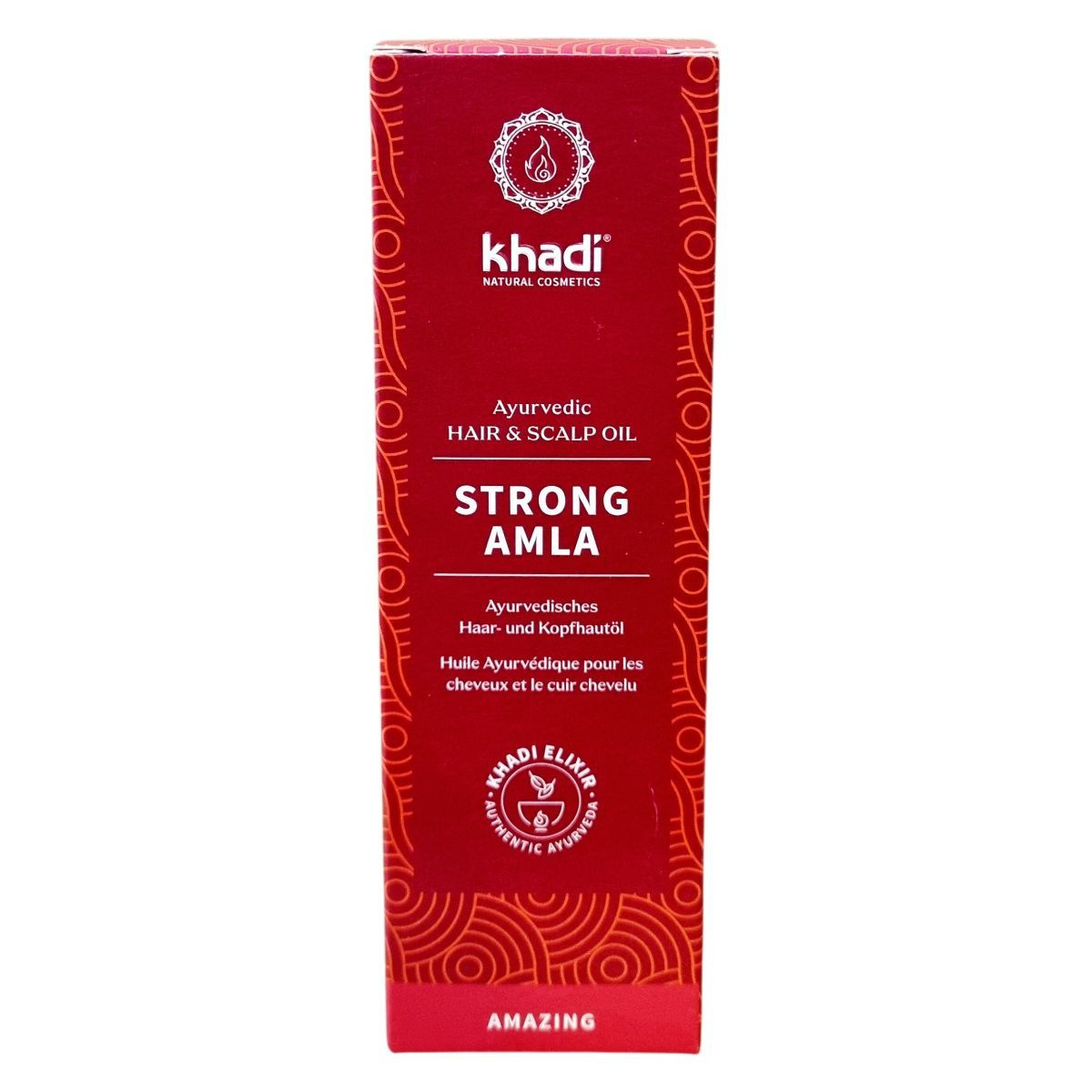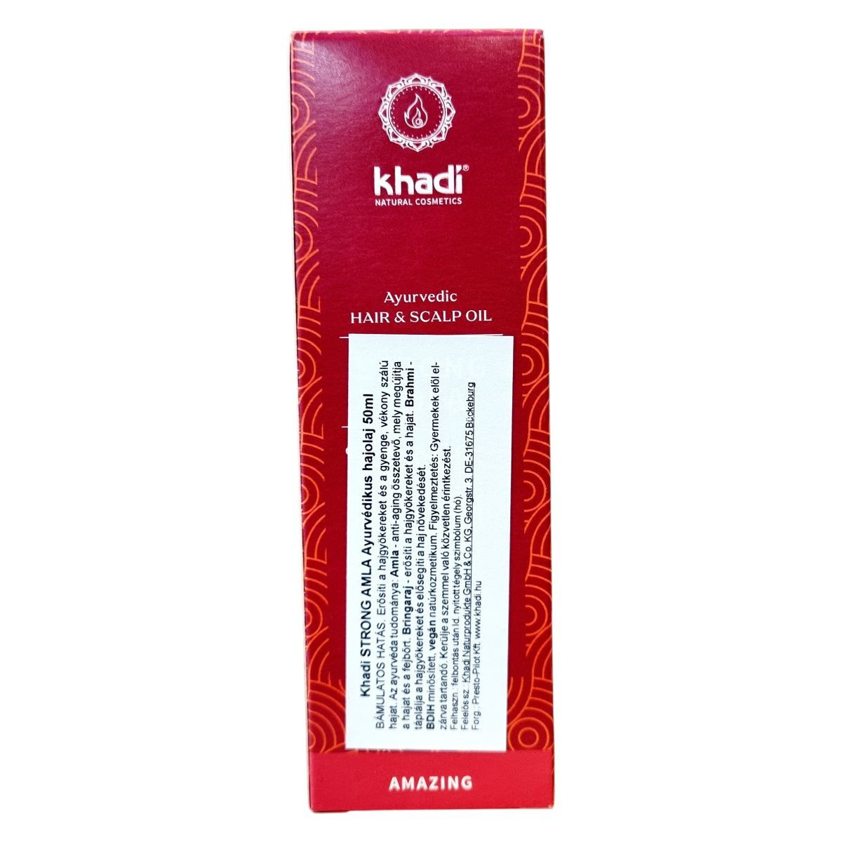 A khadi STRONG AMLA Ayurvédikus hajolaj 50 ml kiszerelésben kapható, német gyártású natúrkozmetikum, amely az Ayurveda hagyományos tudományán alapul. Az Amla kivonat az olaj antioxidáns, anti-aging hatásáról ismert, mely frissíti és regenerálja a hajszálakat és a fejbőrt. A Bhringaraj és Brahmi hatóanyagok erősítik a hajgyökereket, serkentik a haj növekedését, ezáltal támogatva az egészséges, erős haj kialakulását, különösen gyenge vagy vékony haj esetén. A termék összetevőinek többsége ökológiai gazdálkodásból származik, valamint a khadi egyedi, természetes illóolajkompozíciójának köszönhetően friss és kellemes illatot biztosít. A terméket vegán, natúrkozmetikumként minősítették, megfelel az ökocímkék kritériumainak, így környezettudatos választást jelent hajápolásban. Használata rendszeresen ajánlott a haj egészségének megőrzésére. A terméket gyermekek elől védeni kell, és a szemmel való közvetlen érintkezéstől óvni kell.