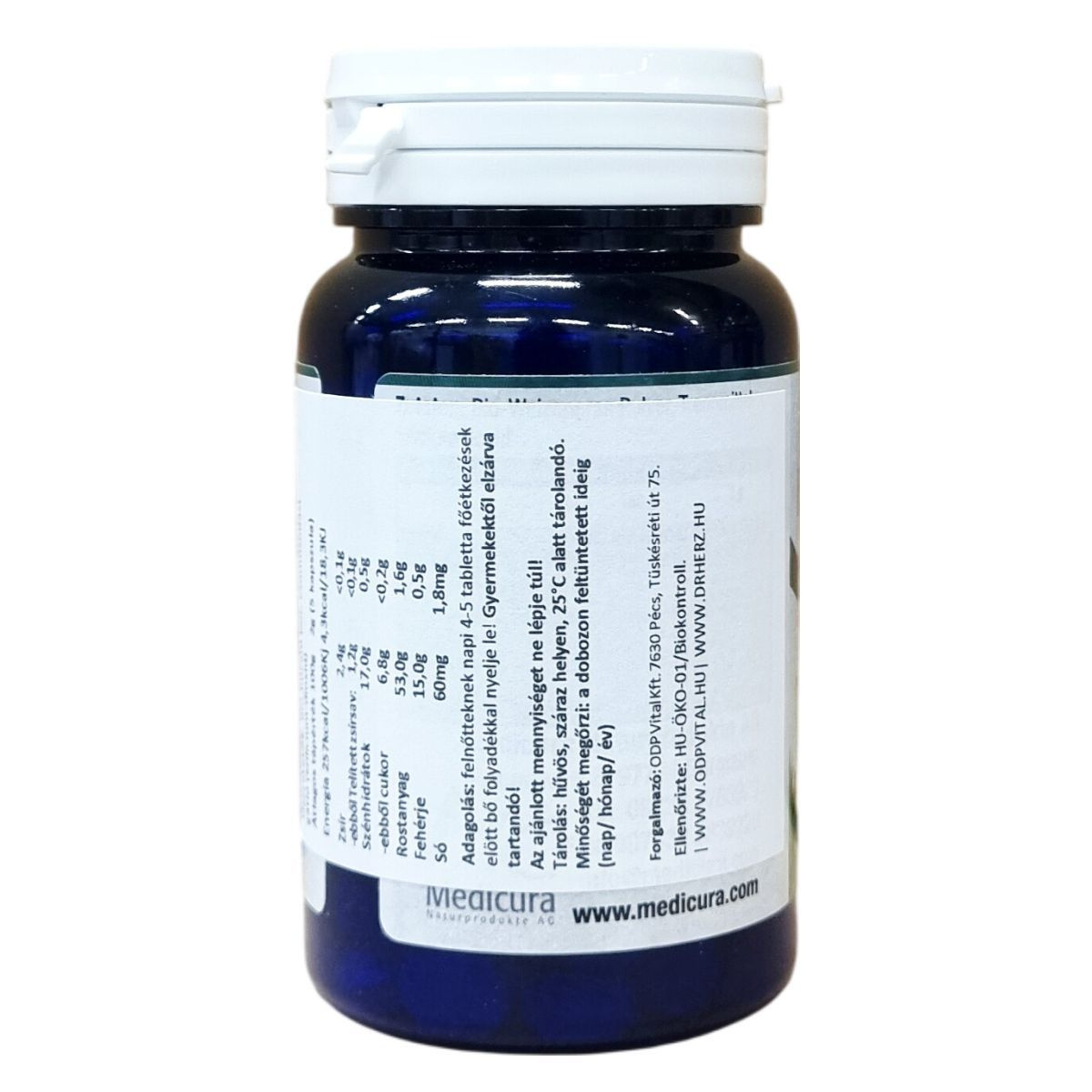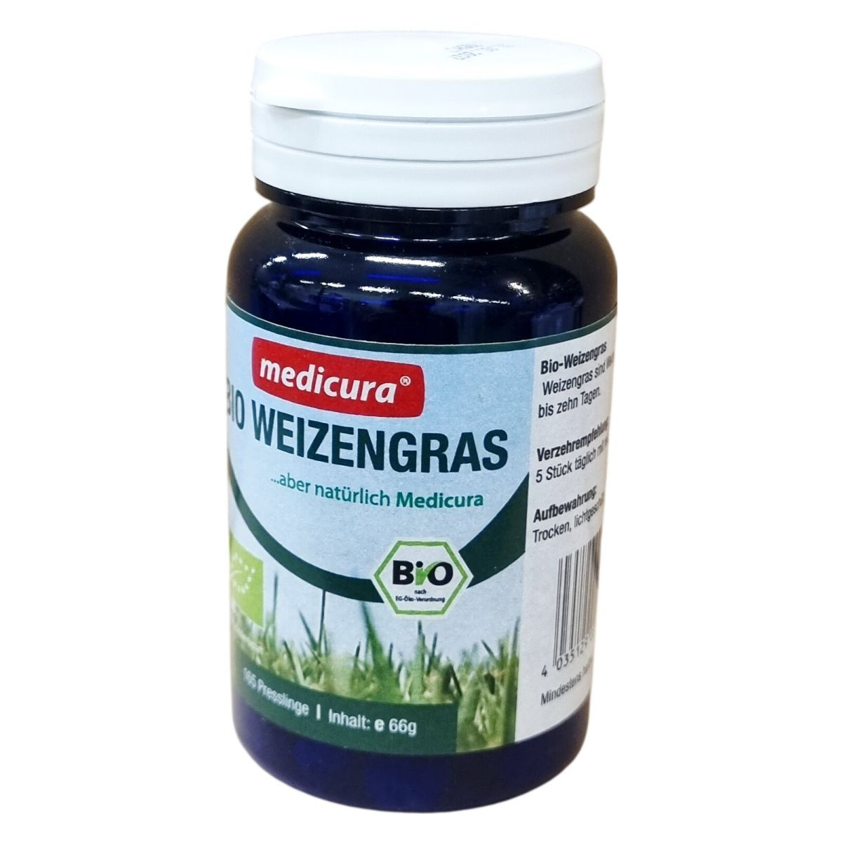 A medicura® BIO WEIZENGRAS bio búzafű préselt tabletta 165 darabos kiszerelésben elérhető, összesen 66 grammos tömegben. A búzafű a búza tenyésző növényének a zöld része, amely a vetés után 7-10 napig fejlődik, és ez idő alatt szedik le. A tabletták bio minőségben készülnek, ami azt jelenti, hogy szigorú ellenőrzés alá esik a termék összetevőinek eredete és előállítása. Az adagolási ajánlás szerint naponta 4-5 darabot kell bevenni, lehetőleg főétkezések előtt, bő folyadékkal. Fontos a gyermekektől való elzárás, valamint az ajánlott napi mennyiség betartása. Az összetevők között bio-búzafű por és a szilícium-dioxid szerepel, amely a csomósodás megakadályozására szolgál. Energia- és tápérték szempontjából a tabletta alacsony kalóriatartalmú, ugyanakkor gazdag rostokban és fehérjében. Tárolása hűvös, száraz, napfénytől védett helyen, 25 Celsius fok alatt javasolt. A termék a biokontroll által igazolt HU-ÖKO-01 tanúsítvánnyal rendelkezik.