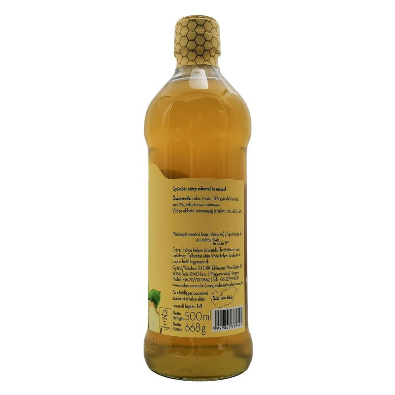 Összetevők: víz, cukor, gyömbér, méz, citromlé, tartósítószer.