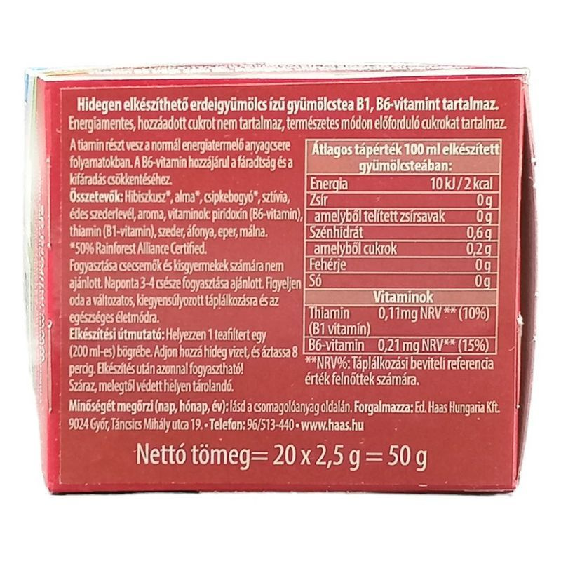 Ez a tea ideális választás bármilyen alkalomra, legyen az egy hűsítő nyári nap vagy egy fárasztó téli este. Melegen és hidegen is fogyasztható, így mindig frissítő élményt nyújt. Élvezd a természet adta ízeket, és merülj el az erdei gyümölcsök csodálatos világában!
