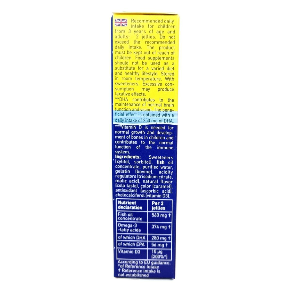 Ez a termék halacska formájú gumivitamin, amely omega-3 zsírsavakat és D-vitamint tartalmaz. Kóla ízű, édesítőszerrel készült étrend-kiegészítő gyerekeknek.