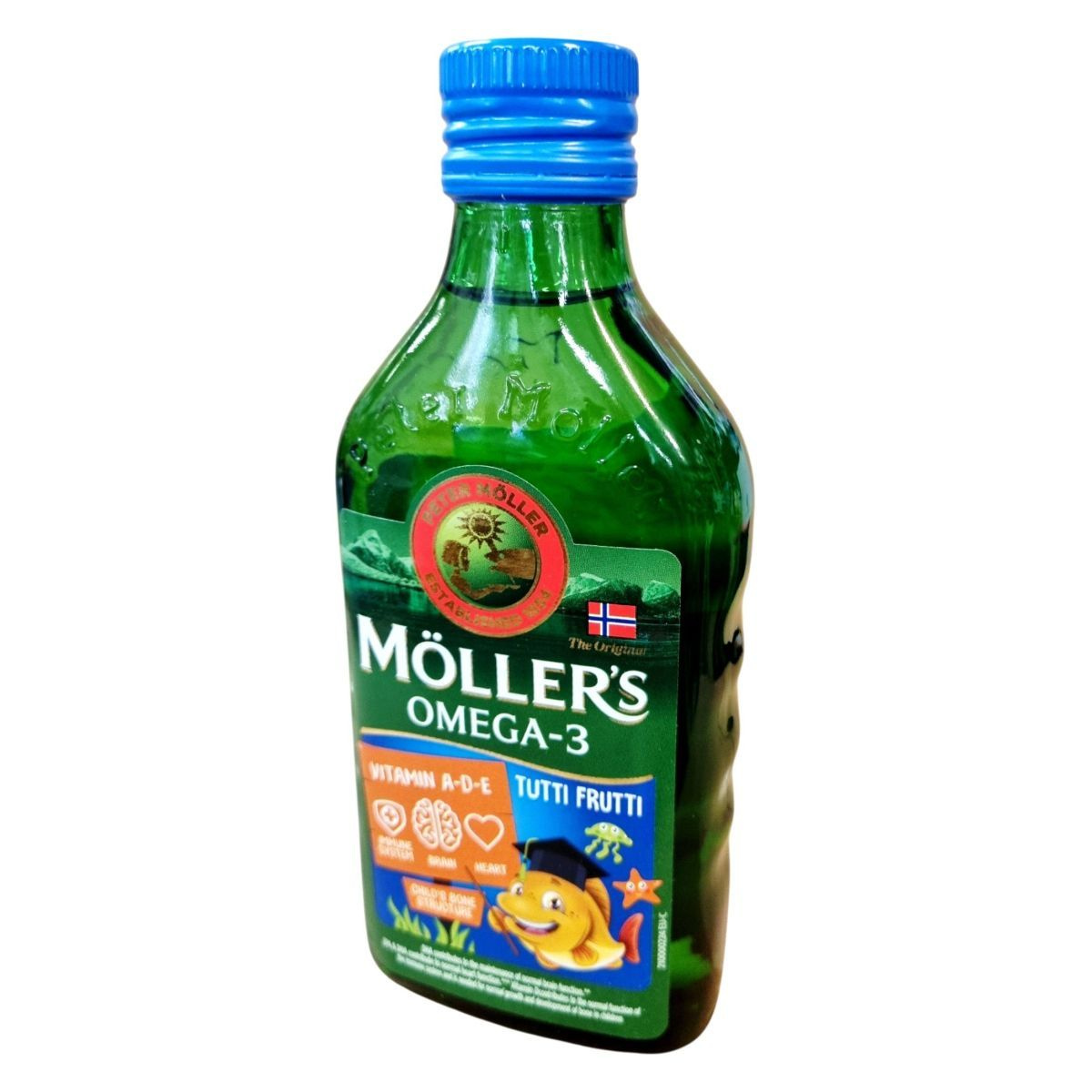 Möller’s Omega-3 halolaj étrend-kiegészítő gyermekeknek A-, D- és E-vitaminnal, tutti frutti ízesítéssel. Esszenciális omega-3-ban rendkívül gazdag tőkehalmájolajból készült. A tőkehalakat a norvég tengeren, Lofoten és Vesterålen környékén fenntartható módon halásszák. A DHA hozzájárul az agy normál működéséhez, az EPA és DHA hozzájárul a szív normál működéséhez, a D-vitamin pedig az immunrendszer normál működéséhez és a gyermekek csontozatának normál növekedéséhez és fejlődéséhez.