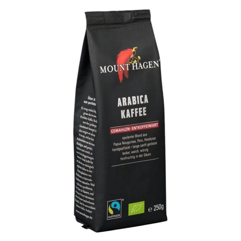 A koffeinmentesítés vegyszerek használata nélkül történik.Összetétel: őrölt pörkölt arabica kávé (100%).