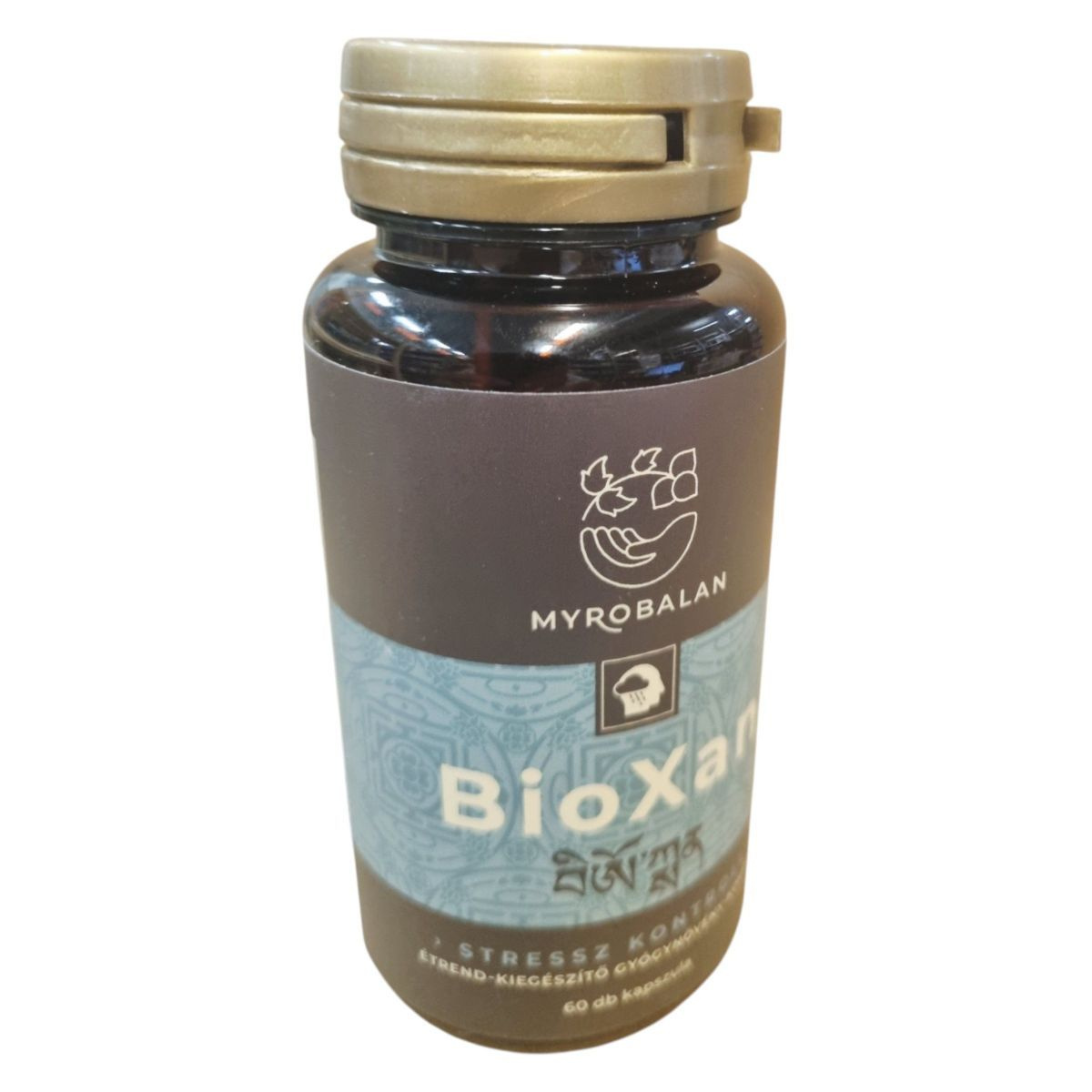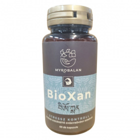 A Myrobalan BioXan egy stressz kontroll étrend-kiegészítő, amely különféle gyógynövényeket tartalmaz, mint például álombogyó, aranygyökér, levendula és orvosi citromfű. Ezek az összetevők hozzájárulhatnak a stressz kezeléséhez és a nyugalom támogatásához. A termék vegán és gluténmentes, nem tartalmaz ízfokozót, színezéket, édesítőt, cukrot, tejet, élesztőt, szóját, tojást, búzát, kukoricát. A kapszulák cellulózból készülnek, és a termék magyar gyártású. A fogyasztás során fontos betartani az ajánlott mennyiséget, és figyelembe venni a macskagyökér esetleges hatásait. A termék tárolása 5-30 °C között, száraz, hűvös helyen ajánlott.