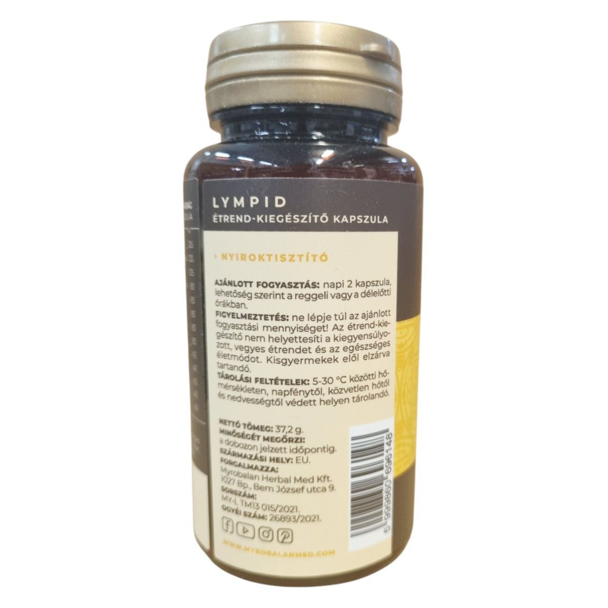 A Myrobalan Lympid egy nyiroktisztító étrend-kiegészítő, amely 60 kapszulát tartalmaz. A termék különböző gyógynövények, például ázsiai gázló, kínai csüdfű és lapacho kombinációját tartalmazza, amelyek hozzájárulhatnak a nyirokrendszer egészségének támogatásához. A termék vegán, gluténmentes és laktózmentes, nem tartalmaz ízfokozót, mesterséges színezékeket, édesítőket, cukrot, tejet, tejcukrot, szóját, búzát és élesztőt. A kapszulák napi ajánlott mennyisége 2 darab, lehetőség szerint reggel vagy délelőtt fogyasztva. A termék magyar gyártású, és a Myrobalan Herbal Med Kft. forgalmazza.