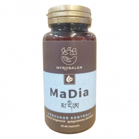 A MaDia étrend-kiegészítő kapszula egy komplex gyógynövény-keverék, amelyet a vércukorszint szabályozásának támogatására fejlesztettek ki. A termék vegán, gluténmentes és tejmentes, így széles körben alkalmazható különböző étrendi igények mellett. A kapszulák olyan hatóanyagokat tartalmaznak, mint a gurmar, keserű dinnye és moringa, amelyek hozzájárulhatnak a vércukorszint egyensúlyának fenntartásához. A termék nem tartalmaz mesterséges színezékeket, ízesítőket vagy édesítőszereket, és 100% natúr összetevőkből áll. Fontos, hogy az ajánlott napi mennyiséget ne lépjük túl, és a terméket gyermekek elől elzárva tartsuk.