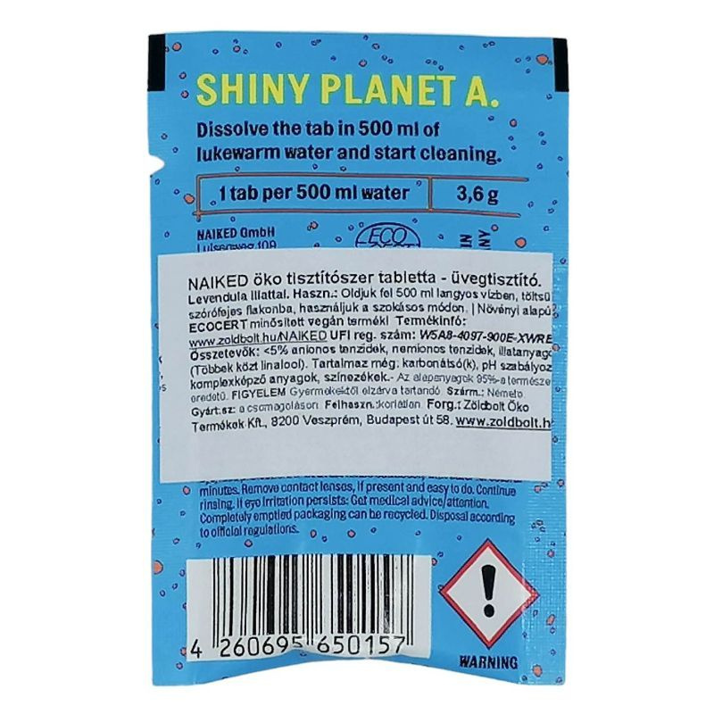 Vízben feloldandó tisztítószer-koncentrátum tabletta, melyből üvegtisztító folyadék készethető.
