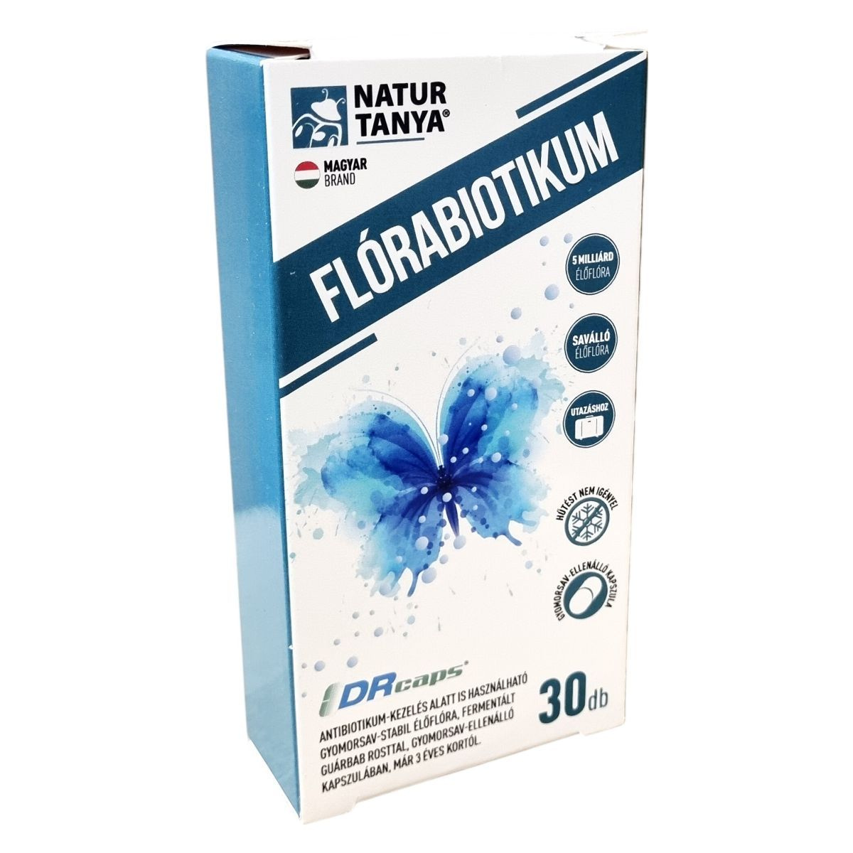 A Natur Tanya® FLÓRABIOTIKUM egy gyomorsav-ellenálló kapszulában lévő élőflóra és fermentált rostkomplex, amely segítheti a bélflóra támogatását, akár antibiotikum-kezelés mellett is, és utazáshoz is alkalmas.