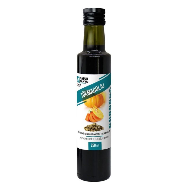 Tele van triptofánnal, telítetlen zsírsavakkal, kiemelkedő a cinktartalma, és nagy mennyiségű antioxidáns anyagokat, például sokféle karotinoidot tartalmaz, mint a lutieint és béta-karotin. Utóbbit a legnagyobb mennyiségben a tökmagolaj tartalmazza az összes magolaj közül!Felhasználási javaslat: A finom diós ízű, isteni salátaöntet, és feltétlen próbáld ki pirítóson is! Ugyanakkor közvetlenül is iható, hogy felszívd az antioxidáns előnyeit, mely által belülről fog működni a varázslat. Külsőleg csak masszírozd a bőrödbe, vagy adj hozzá teafaolajat és más hidegen sajtolt olajat, hogy kiegyensúlyozottan, ragyogóan tartsa a bőröd.