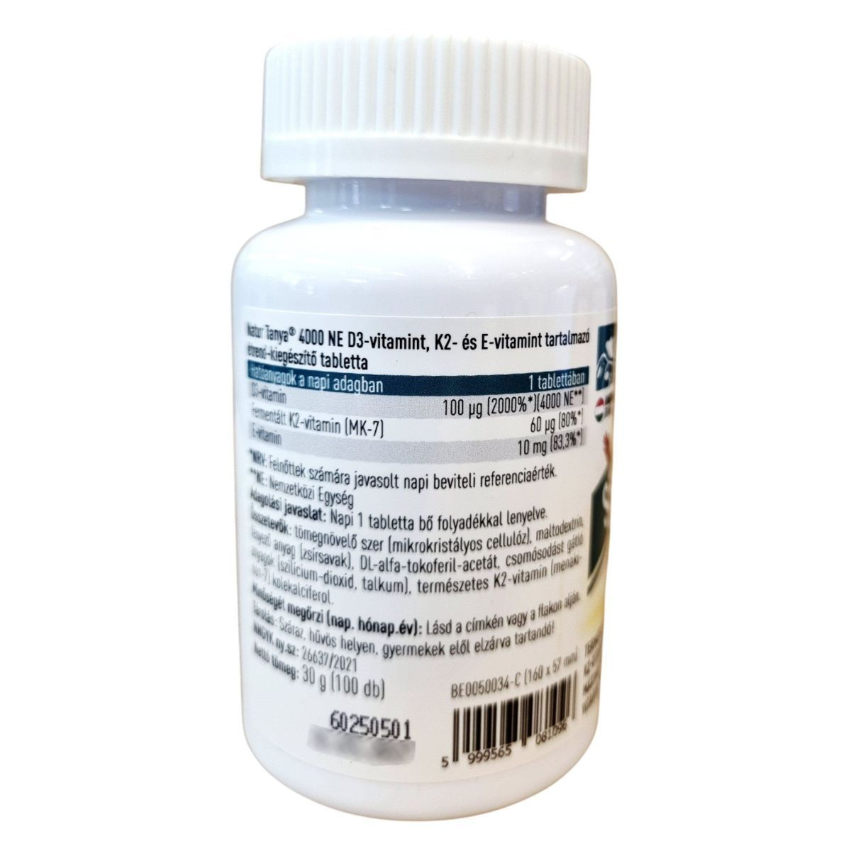 Természetes D3-, fermentált K2- és antioxidáns E-vitamint tartalmazó étrend-kiegészítő tabletta, amely támogatja az immunrendszert, csontozatot és véralvadást.