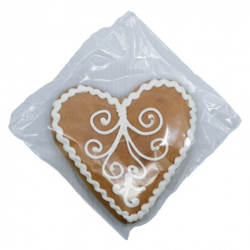 Puha, omlós tészta szegfűszeggel, fahéjjal és virágmézzel ízesítve, tönkölylisztből sütve. A szeretetet, figyelmességet, gondoskodást, leginkább kifejező kézműves alkotás. Népi iparművészeti díszítéssel, hagyományos módon készül. Mivel különböző népi motívumokkal egyesével díszíti a mézeskalácsos mester, így nincs két teljesen azonos darab. Mérete kb. 10,5 cm x 8 cm.