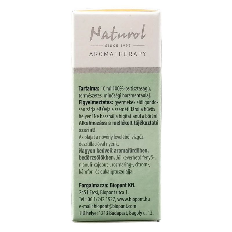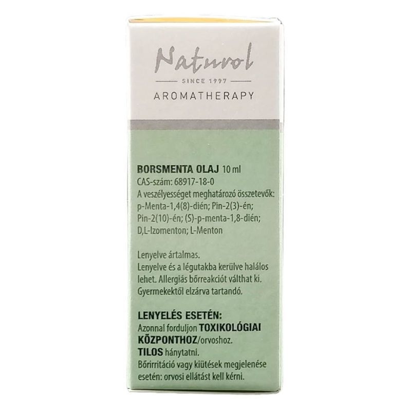 Figyelmeztetés! A borsmenta olaj kisgyermekek légző rendszerébe kerülve légszomjat, szélsőséges esetekben tüdőbénulást okozhat. Hat évesnél fiatalabb gyermekeknél légzőszerveik környékén tilos a használata, beleértve a párologtatás koncentrált formáit és az olaj közvetlen belégzését is. A borsmenta olaj blokkolja a homeopátiás gyógyszerek hatását, ezért homeopátiás kezelések alatt használata nem javasolt. Nem toxikus, nem irritál (csak magas koncentráció esetén), mentoltartalma érzékenyíthet. Az illóolajok erős hatásúak, allergizálhatnak, ezért a felhasználás előtt alkarunk belső bőrére cseppentsünk 1-2 csepp illóolajat és dörzsöljük be. Ha nem jelentkezik néhány óra elteltével viszketés és pirosodás, biztonságosan használhatjuk masszírozáshoz, fürdéshez és borogatáshoz. Az illóolajok gyúlékony vegyületek, ezért az aromalámpát biztonságosan égő mécsessel használja! Gyermekek elől gondosan zárja el! Tárolja hűvös, fénytől védett helyen! Hígítatlanul ne használjon illóolajat a bőrén! Külsőleg használja! A felsoroltaktól eltérő felhasználás esetén konzultáljon orvossal vagy szakemberrel!