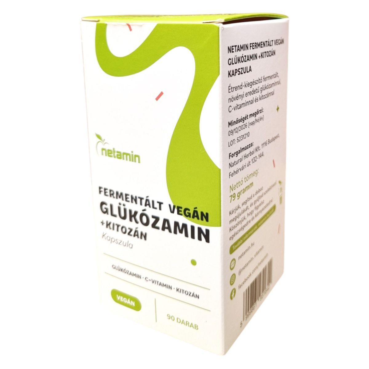 A Netamin Fermentált Vegán Glükózamin + Kitozán kapszula egy étrend-kiegészítő, amely fermentált, növényi eredetű glükózamint, C-vitamint és kitozánt tartalmaz. A C-vitamin hozzájárulhat a normál kollagénképződéshez, ami támogathatja a porcok normál állapotának fenntartását. A termék vegán, így azok is fogyaszthatják, akik kerülik az állati eredetű összetevőket. A kapszulák napi adagja 3 darab, amelyet bő folyadékkal, lehetőleg étkezés közben ajánlott bevenni. A termék forgalmazója a Natural Herbal Kft., és további információk elérhetők a netamin.hu weboldalon.