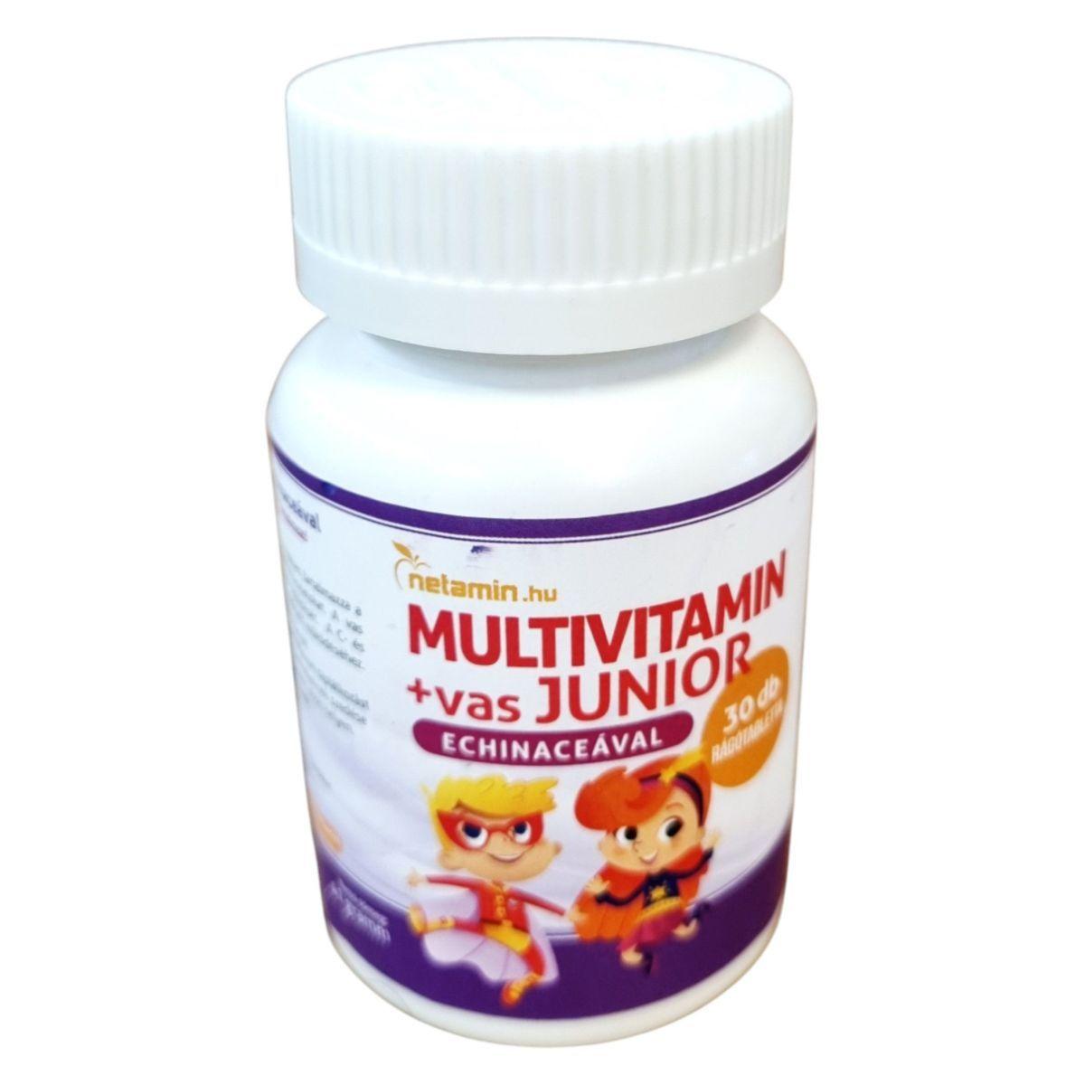 A Netamin Multivitamin+vas JUNIOR Echinaceával egy finom rágótabletta formájában kínál vitaminokat, ásványi anyagokat és gyógynövény-kivonatokat, amelyek hozzájárulhatnak az immunrendszer megfelelő működéséhez. A termék különösen gyermekek számára készült, és 3 éves kortól ajánlott. A termék bio étrendi irányzatot követ, és számos fontos vitamint és ásványi anyagot tartalmaz, mint például C-vitamin, vas, B-vitaminok, A-vitamin, biotin, kolin, echinacea-kivonat, keserű narancs por és porított lenmag olaj. Az összetevők között megtalálható a szorbitol, cukor, kalcium-hidrogén-foszfát és számos más fontos anyag. A termék forgalmazója az Organikus Egészség Egyesület.