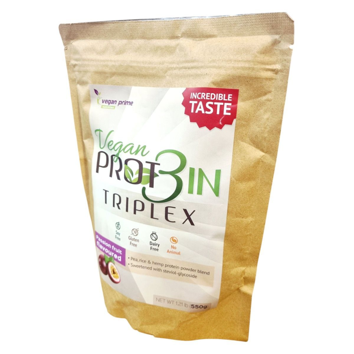 A Vegan PROT3IN TRIPLEX egy vegán maracujaízű fehérje alapú italpor, amely a borsó-, barnarizs- és kendermagfehérje egyedülálló kombinációját tartalmazza. Könnyen emészthető és változatosan felhasználható, ideális fehérjeturmixok, smoothie-k készítéséhez, de sütéshez is alkalmazható. A termék nem tartalmaz glutént, szóját, tejet, színezéket és tartósítószert, így különböző étrendi igényekhez is alkalmazkodik. A termék sztéviol-glikoziddal édesített, és maracuja ízesítésű, amely különleges ízélményt nyújthat. A termék 550 grammos kiszerelésben kapható, amely 22 adagot tartalmaz.
