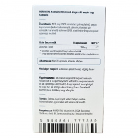 A NORDVITAL Koenzim Q10 étrend-kiegészítő 100 mg ubikinont (Q10) tartalmaz, amely RSPO minősített, fenntartható gazdaságból származó MCT olajban oldott és napraforgóból származó lecitin hozzáadásával készült. A készítmény vegán lágy kapszulákkal érhető el, melyek kukoricakeményítőből, glicerinből, tisztított vízből és karamellszínezékből állnak. A termék GMP minősített gyártóüzemben készül, laboratóriumban bevizsgált, és glutén-, laktóz-, allergén- és GMO-mentes. Nettó tömege 28,2 g, 60 kapszula található egy dobozban, amely 60 napi adagnak felel meg. A minőség megőrzése érdekében a kapszulákat száraz, napfénytől védett, gyermekektől elzárt helyen szobahőmérsékleten célszerű tárolni.