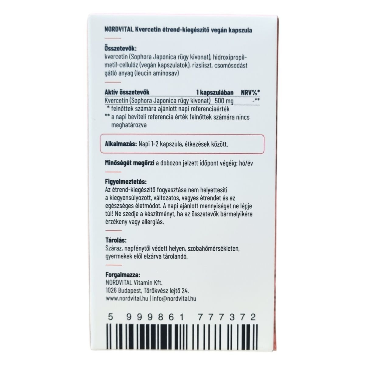 A Nordvital Kvercetin 500 mg vegán kapszula egy hatékony táplálékkiegészítő, amely kvercetin nevű flavonoidot tartalmaz. A 60 darabos kiszerelés lehetővé teszi a hosszabb távú használatot.