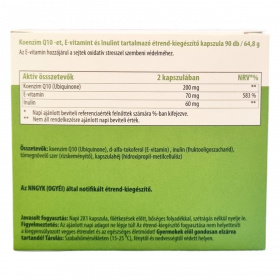 A Coenzyme Q10 Ubiquinone 200 mg kapszula étrend-kiegészítőként készült, különösen ajánlott öregedés folyamatában és kiegyensúlyozatlan táplálkozás esetén a Q10 bevitelének kiegészítésére. A koenzim Q10 a sejtek anyagcsere folyamataiban játszik döntő szerepet, míg az E-vitamin hozzájárulhat a sejtek oxidatív stresszel szembeni védelméhez. Az inulin továbbá segítheti a vitaminok, ásványi anyagok és nyomelemek hatékonyabb hasznosulását. A termék kapszulák formájában készül, és napi két alkalommal, főétkezések előtt ajánlott bevenni bőséges folyadékkal. Az összetevők között megtalálható a koenzim Q10, d-alfa-tokoferol (E-vitamin), inulin, rizskeményítő tömegnövelő szerként, valamint hidroxipropil-metilcellulóz alapú kapszulahéj. A termék megfelel az NNGYK (OGYÉI) által előírt notifikációs követelményeknek.