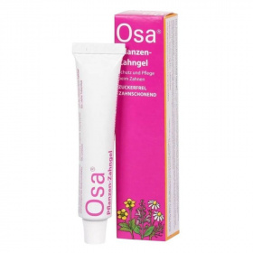Az Osa Gyógynövénytartalmú fogínygélt felnőttek is alkalmazhatják a műfogsor által okozott nyomáspontok ápolására, valamint a szájüreg és a fogíny irritációja esetén. A készítmény kamillát, szegfűszeget, zsályát, borsmentát és propoliszt tartalmaz.