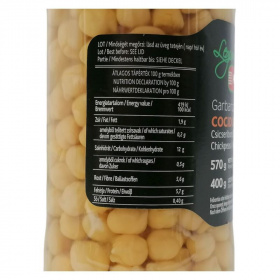 Összetevők: Csicseriborsó, víz, só, szekvesztrálószer: E385, tartósítószer: E-223 (nátrium-diszulfit)