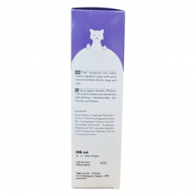 Kutyák, macskák és kistestű emlősök részére fejlesztett, természetes illóolajokat tartalmazó spray, amely segíthet a kullancsok és más rovarok távol tartásában.