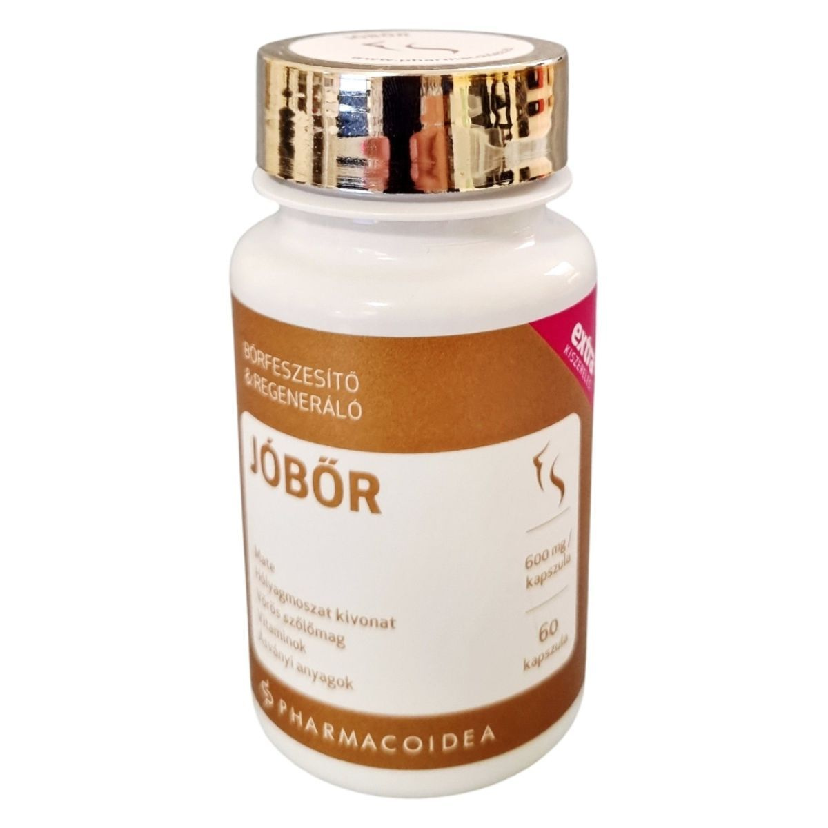 A JÓBŐR étrend-kiegészítő kapszula olyan hatóanyagokat tartalmaz, mint a vörösszőlőmag kivonat, L-karnitin, hólyagmoszat kivonat, valamint különböző vitaminok és ásványi anyagok. Ezek az összetevők hozzájárulhatnak a test zsírtartalékainak csökkentéséhez, a testsúly szabályozásához, a bőr normál állapotának fenntartásához, a normál kollagénképződéshez, az energiatermelő anyagcseréhez, a sejtek oxidatív stresszel szembeni védekezéséhez és a pajzsmirigyhormonok normál szintéziséhez. A termék fogyasztása nem helyettesíti a kiegyensúlyozott étrendet és az egészséges életmódot.