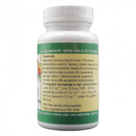 Szem éles látáshoz 20mg lutein, zeaxantin, fekete áfonya, amely antocioninjai segíthetik a szem kollagén egészséges szinten tartását és a retina hajszálereinek épségét.
