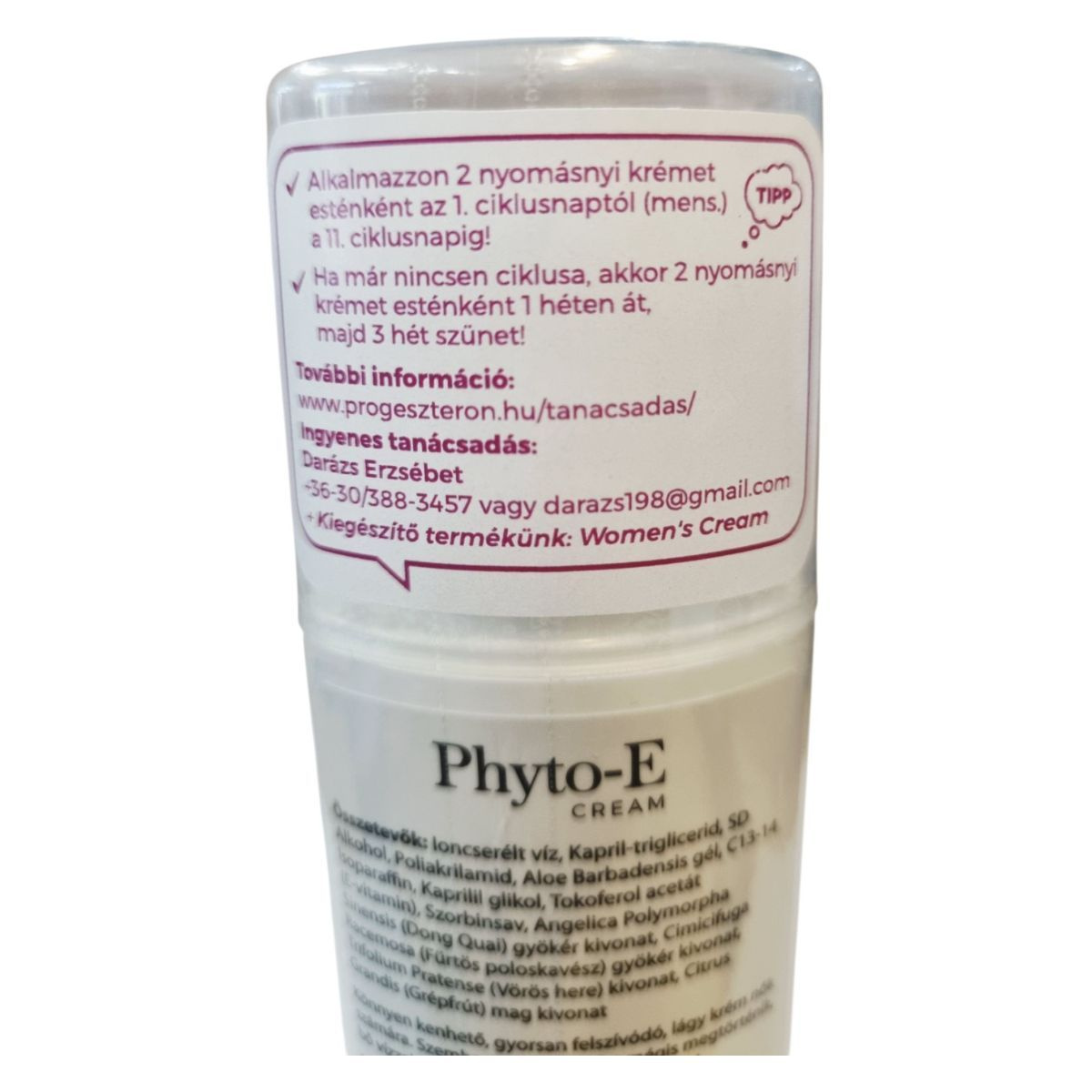 A Phyto-E Cream for women egy speciálisan nők számára kifejlesztett krém, amely könnyen kenhető és gyorsan felszívódik. Az alkalmazás módja a menstruációs ciklushoz igazodik, de ciklus nélküli használat esetén is van javasolt alkalmazási rend. A termék összetevői között megtalálható az E-vitamin és különböző növényi kivonatok, mint például a Dong Quai és a Vörös here. A krém minden bőrtípusra javasolt, de fontos, hogy szembe ne kerüljön, és csak külsőleg alkalmazható. A termék tárolása száraz, fénytől védett helyen ajánlott, és gyermekek elől elzárva tartandó. További információkért és ingyenes tanácsadásért látogasson el a www.progeszteron.hu/tanacsadas/ oldalra vagy vegye fel a kapcsolatot Darazs Erzsébettel.