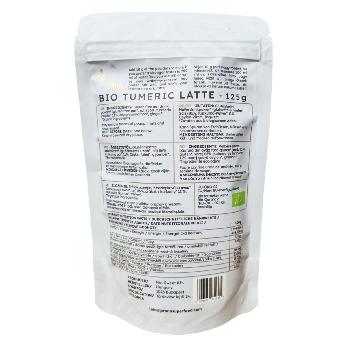 A Prána BIO TUMERIC LATTE egy 100% természetes italpor, amely kiváló minőségű kurkumából készül. A termék bio, vegán és gluténmentes, így széles körben fogyasztható. Az elkészítése egyszerű: csak adjon a porból vízhez, keverje össze, és máris élvezheti a meleg, aromás ízvilágot. Az összetevők között megtalálható a gluténmentes zabitalpor, kurkumapor, ceyloni fahéj és gyömbér, mind bio minőségben. A termék nyomokban tartalmazhat földimogyorót, dióféléket és szezámmagot. Tárolása száraz, hűvös helyen ajánlott, és a minőségét a csomagolás alján feltüntetett időpontig őrzi meg.