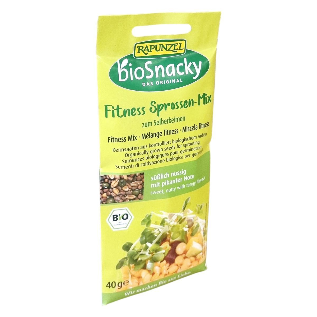A RAPUNZEL bioSnacky Fitness csíramagkeverék kontrollált ökológiai gazdálkodásból származó magvakból áll, így támogatja az egészséges életmódot organikus és természetes módon. A csomag papírból készült, környezetbarát csomagolás, amely 100% újrahasznosítható. A magkeverék ideális csíráztatásra, ajánlott mennyiség 2 evőkanál, optimális csíráztatási körülmények mellett gyorsan és egyszerűen friss, tápanyagban gazdag csírák állíthatók elő, melyek enyhén édes, diós ízűek, pikáns aromával. Az összetevők között retek, mungóbab és búza mag található, melyet felhasználás előtt áztassunk be és rendszeresen öblítsünk. A kész csírák fogyasztása egészséges, azonban allergiásoknak figyelembe kell venniük a mustár esetleges nyomok jelenlétét. A termék származási helye EU és nem EU mezőgazdaság.