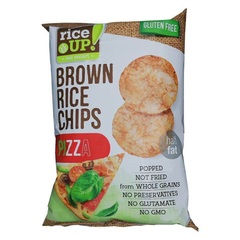 RICE UP gluténmentes pizza ízű barna rizs chips.