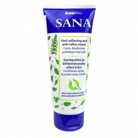 A növényi hatóanyagokat tartalmazó Sana sarokpuhító és bőrkeményedés elleni krém hatékonyan ápolja a sarok különösen száraz bőrét. Urea tartalma hidratálja és puhán tartja a bőrt, elősegíti annak a megújulását. Rendszeres használatával a berepedezések megszűnnek, az újabbak kialakulása pedig megelőzhető.