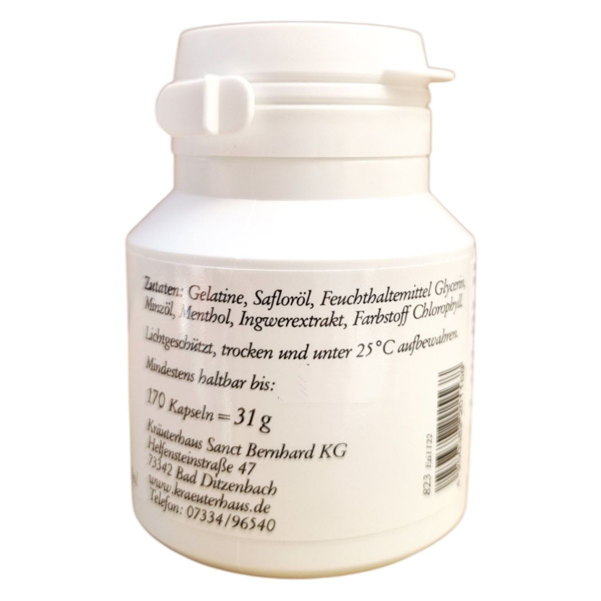 Összetevők: zselatin, pórsáfrányolaj, glicerin (hidratáló), mentaolaj, mentol, gyömbérkivonat, klorofill (szinezék).