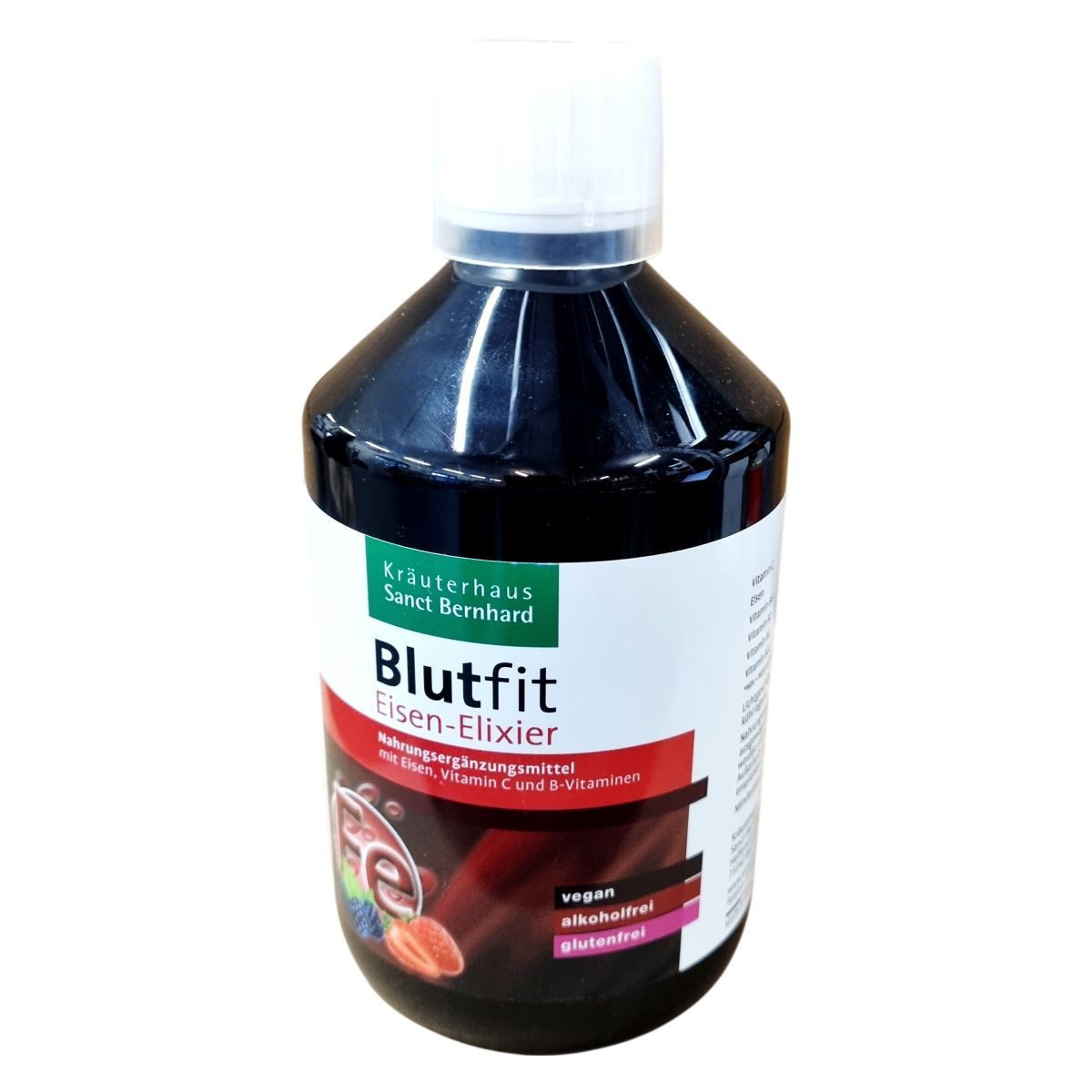 A Blutfit Eisen-Elixier vasat, C-vitamint és B-vitaminokat tartalmazó folyékony étrend-kiegészítő. A vas részt vesz a normál hemoglobinképződésben és a fáradtság csökkentésében. A készítmény vegán, alkoholmentes és gluténmentes gyümölcskoncentrátum alapú termék.