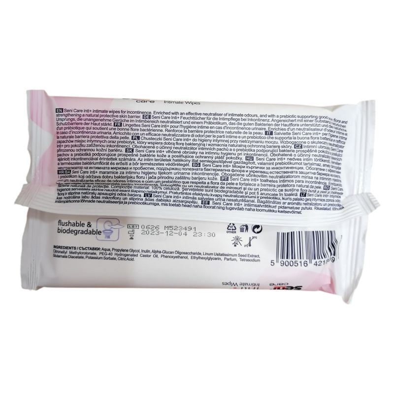 A Seni Care Inti+ intimhigiénés nedves törlőkendő ápolja és gyengéden tisztítja az intim területeket. Ideális választás érzékeny bőrű férfiak és nők számára egyaránt.
