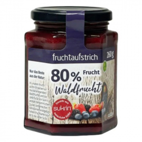Frissítő és igazán gyümölcsös: a legjobb áfonyák, aromás szedrek, finom és piros ribiszkék, ízletes eprek és bodzabogyók megfelelő aránya egy igazán ízletes erdei gyümölcs keveréket eredményez. Ezeket befőztük, kiegészítettük, többek között a finomított cukortól mentes SUKRIN-nal és üvegekbe töltöttük.