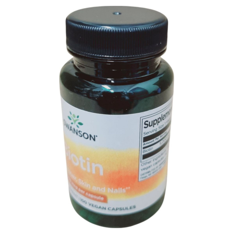 A Swanson Biotin étrend-kiegészítő kapszula formájában kínálja a biotint, amely egy fontos B-vitamin. A termék 5000 mcg biotint tartalmaz kapszulánként, ami hozzájárulhat a haj, a bőr és a köröm egészségének fenntartásához. A kapszulák rizslisztet és zselatint tartalmaznak. A termék használata során fontos, hogy ne lépjük túl a javasolt napi adagot, és tartsuk távol gyermekektől. A termék terhesség és szoptatás alatt nem ajánlott. A Swanson Health Products által gyártott terméket a Creams of Norway Kft. forgalmazza Magyarországon.