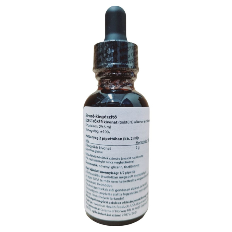 Az Édesgyökér kivonat tinktúra formájában érhető el, amely alkohol- és cukormentes, így különösen alkalmas azok számára, akik ezeket az összetevőket elkerülnék. A termék 29,6 ml-es kiszerelésben kapható, és a napi ajánlott mennyiség 1/2 pipetta. Az édesgyökér kivonat hozzájárulhat a szervezet általános jólétéhez. Fontos, hogy a terméket gyermekek elől elzárva tartsuk, és terhesség vagy szoptatás alatt ne fogyasszuk. A termék minőségét a doboz oldalán jelzett hónap végéig őrzi meg. A gyártó Swanson Health Products, a forgalmazó pedig a Creams of Norway Kft. Magyarországon.