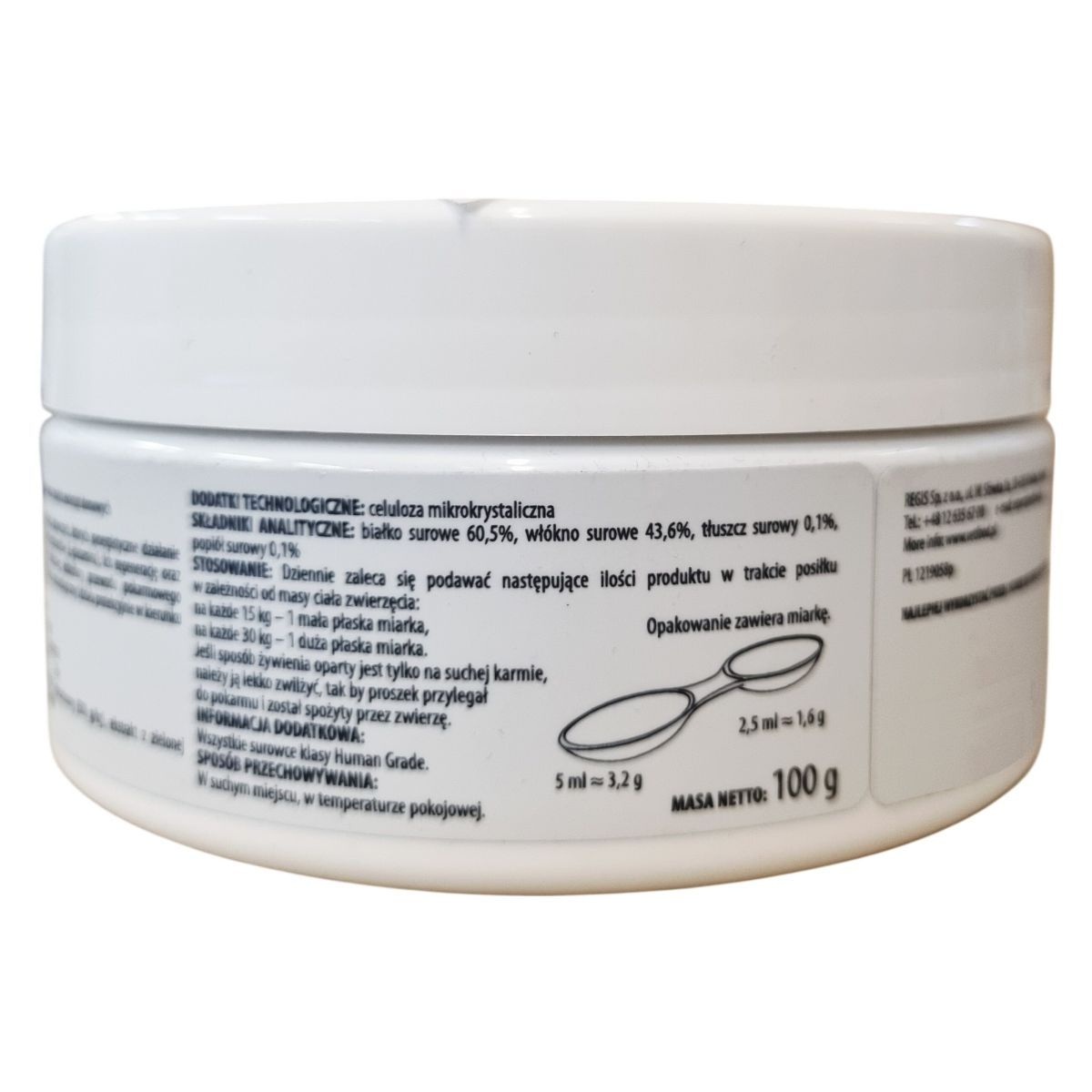 Napi adagolás állat testtömege szerint: 15 kg-onként 1 kis mérőkanál, 30 kg-onként 1 nagy mérőkanál. Száraz eledelek esetén nedvesítsük meg az eledelt, hogy a por tapadjon a táplálékhoz.