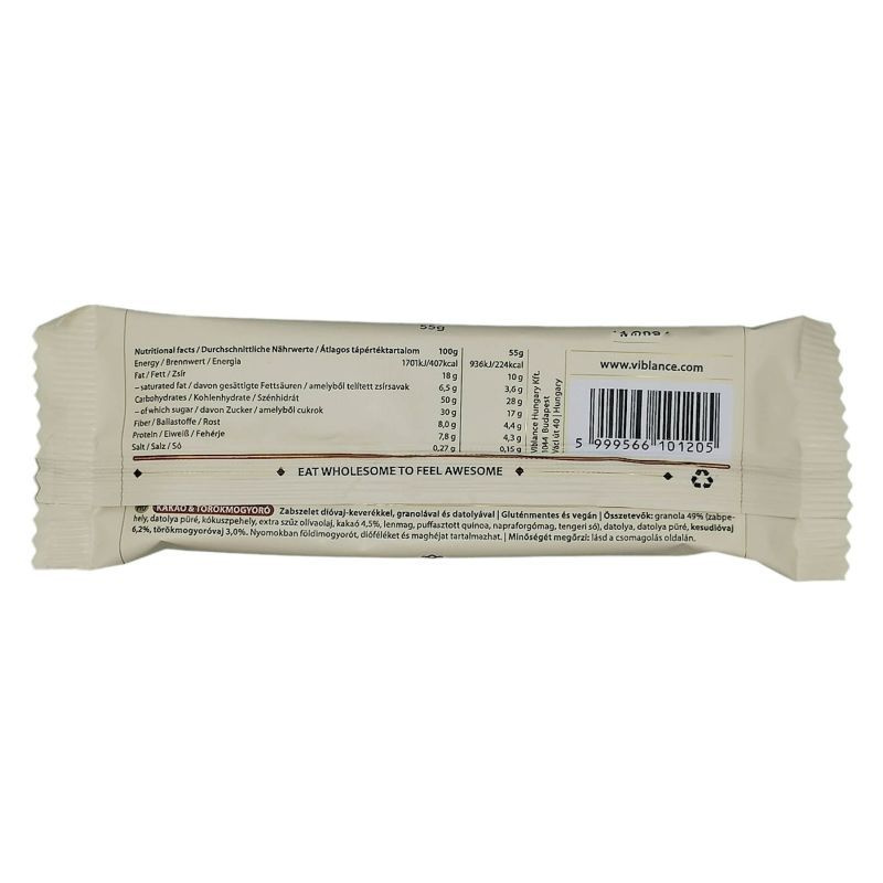 Ez a granola szelet 100% természetes, növényi összetevőkből készült, krémes textúrával és egyedi ízekkel.