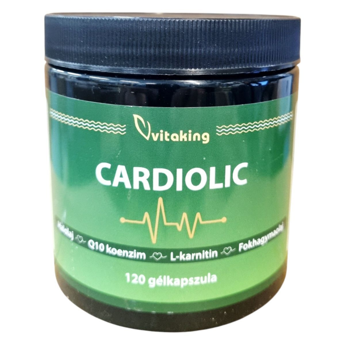 A Vitaking CARDIOLIC étrend-kiegészítő 120 gélkapszulát tartalmaz, amely halolajat, Q10 koenzimet, L-karnitint és fokhagymakivonatot tartalmaz. Az EPA és a DHA hozzájárulhat a szív megfelelő működéséhez, míg a DHA a normál agyi funkció fenntartásához. A termék segíthet fenntartani a normál koleszterinszintet, a szív és az erek egészségét. A kedvező hatás 250 mg EPA és DHA napi bevitelével érhető el. A termék használata során fontos, hogy a napi ajánlott mennyiséget ne lépje túl, és a terméket gyermekek elől elzárva, száraz, hűvös helyen tárolja.