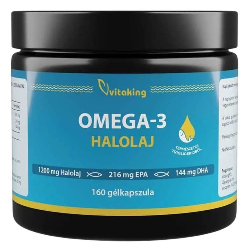 Vitaking Omega-3 halolaj kiváló minőségű, természetes triglicerid formájú halolajjal. A triglicerid forma hatékonyabb felszívódást biztosít a szervezet számára, mint az etil-észter alapú halolajok.