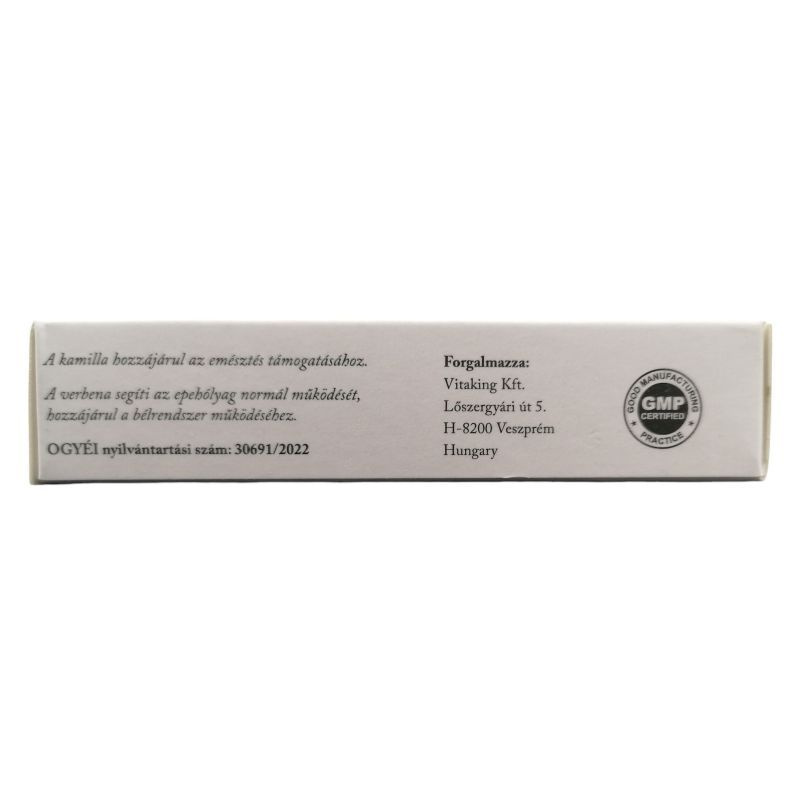 A verbena segíti az epehólyag normál működését, hozzájárul a bélrendszer működéséhez. A kamilla, mint gyógynövény, a házipatika nélkülözhetetlen kelléke. Nem csak stresszes életmód esetén jelent kiváló támogatást, hanem hozzájárul az emésztés támogatásához is.