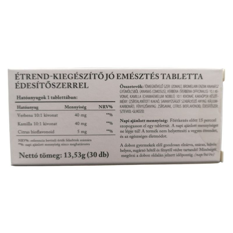 Az emésztéstjavító tabletta segít a bélrendszeri problémák, például puffadás és gyomorégés kezelésében. Természetes összetevői révén támogatják az emésztést és a bélflóra egyensúlyát. Használatával javíthatja közérzetét.