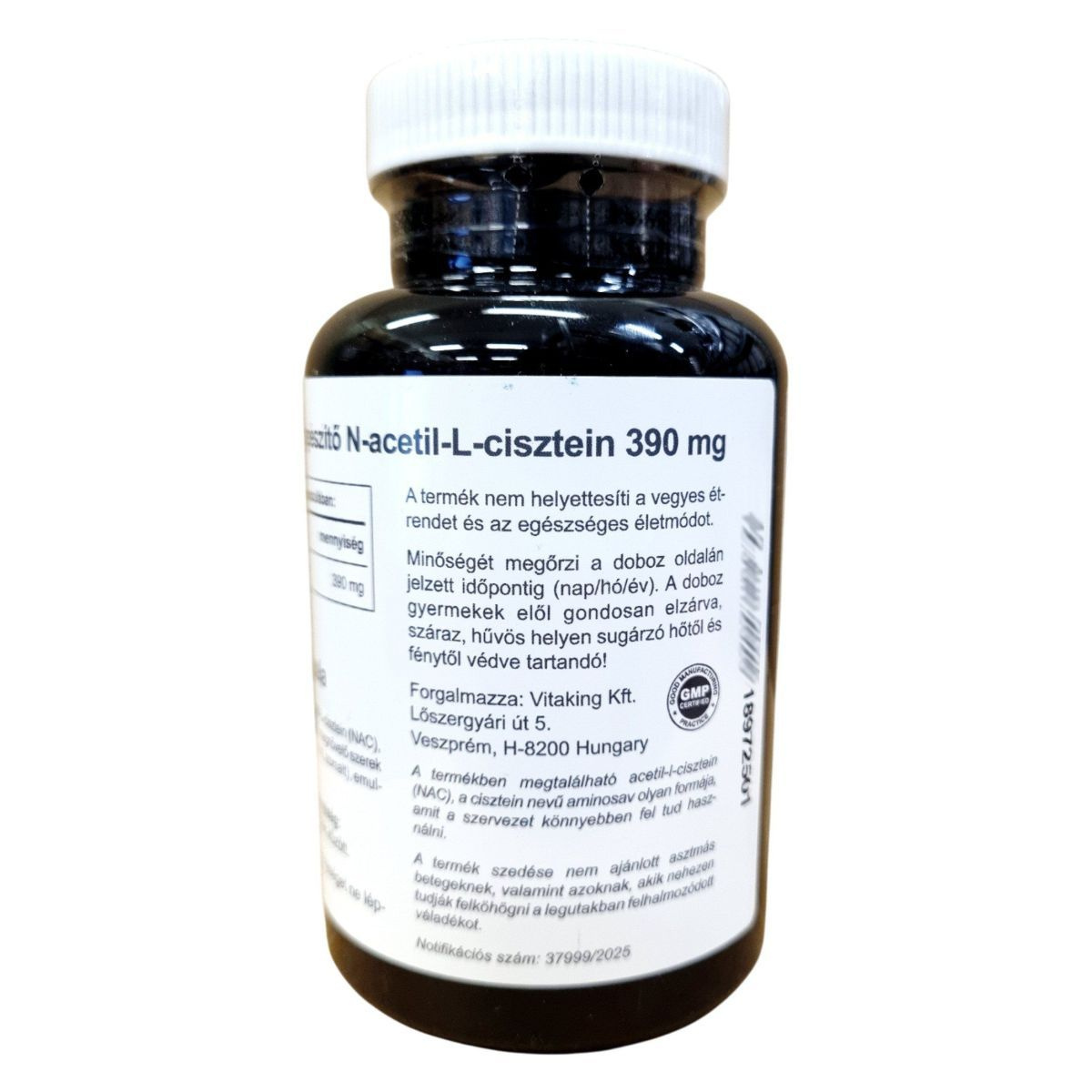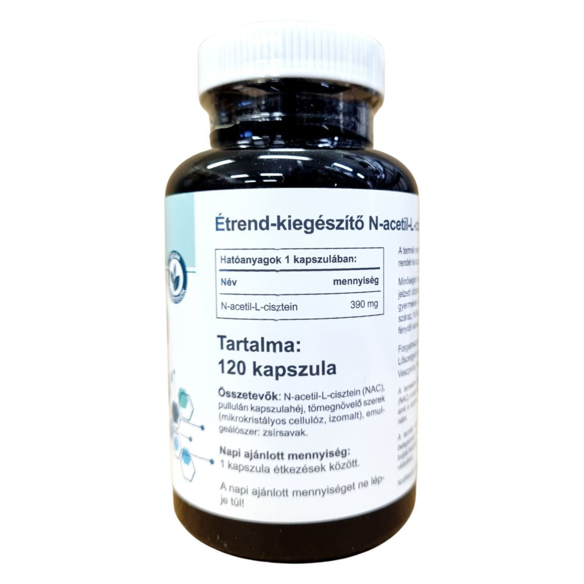 Az N-acetil-L-cisztein (NAC) a cisztein nevű aminosav stabil, jól hasznosuló formája. A szervezet könnyen átalakítja és felhasználja fehérjeszintézishez és egyes anyagcsere-folyamatokhoz. A készítmény kapszulánként 390 mg NAC-ot tartalmaz.